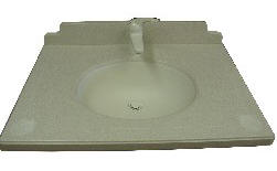 Solid surface vanity tops can be shaped, sculpted, inlaid, coved, and